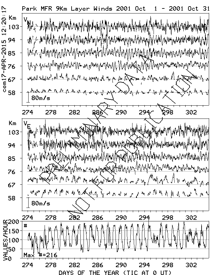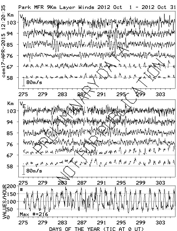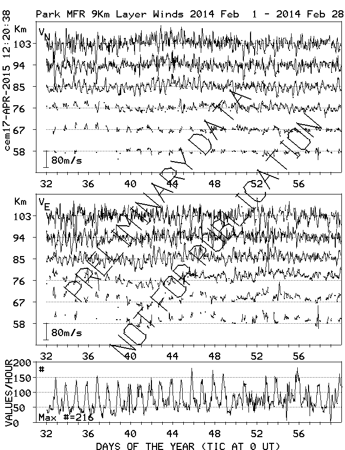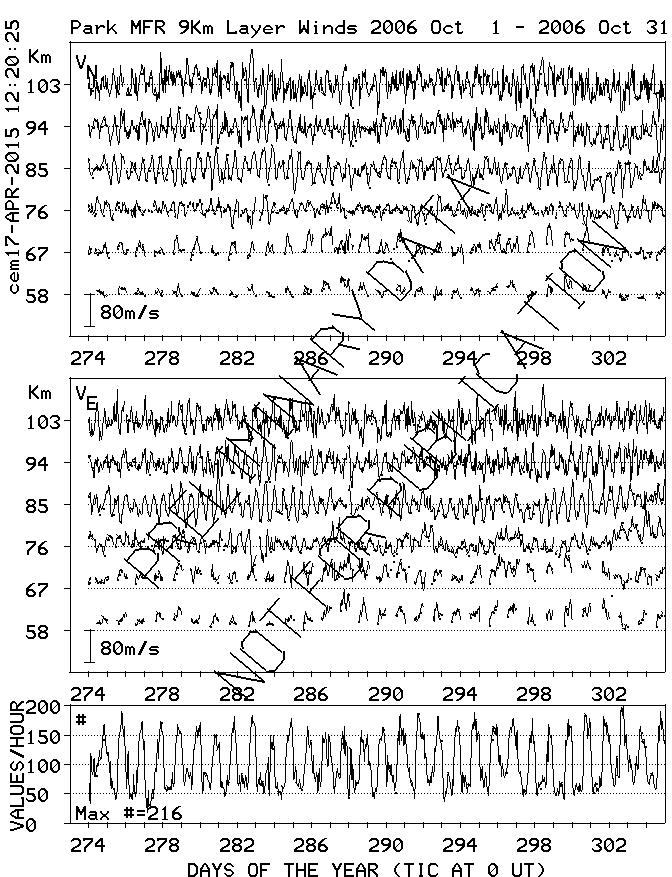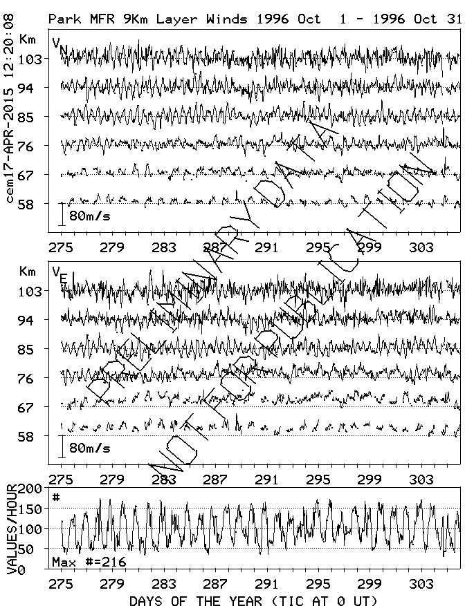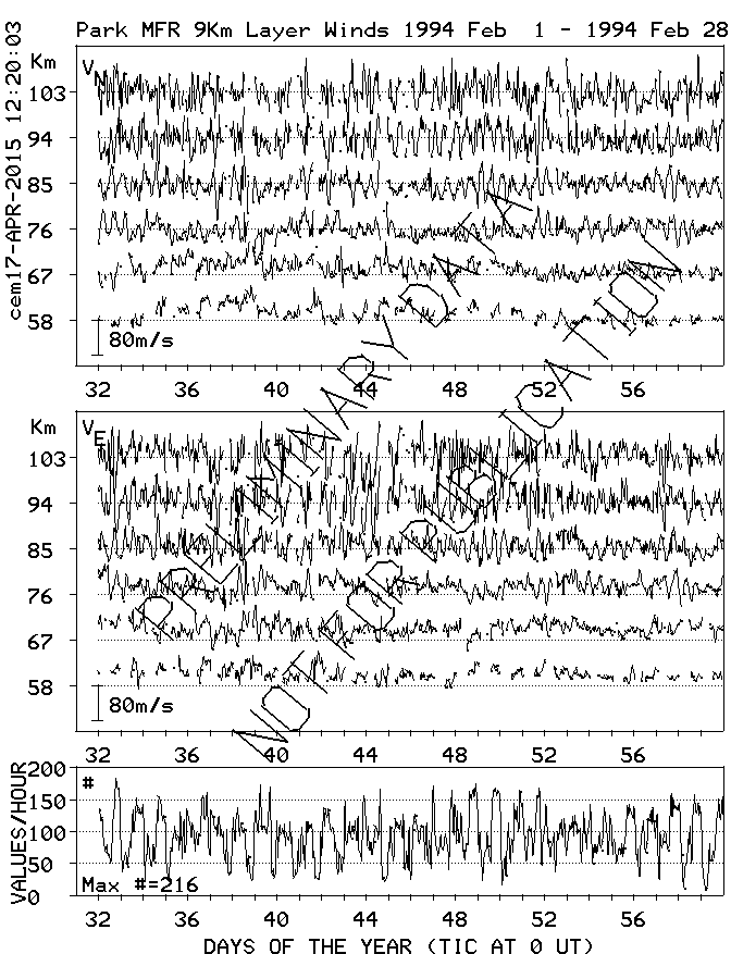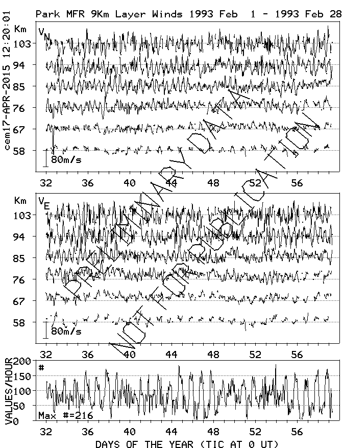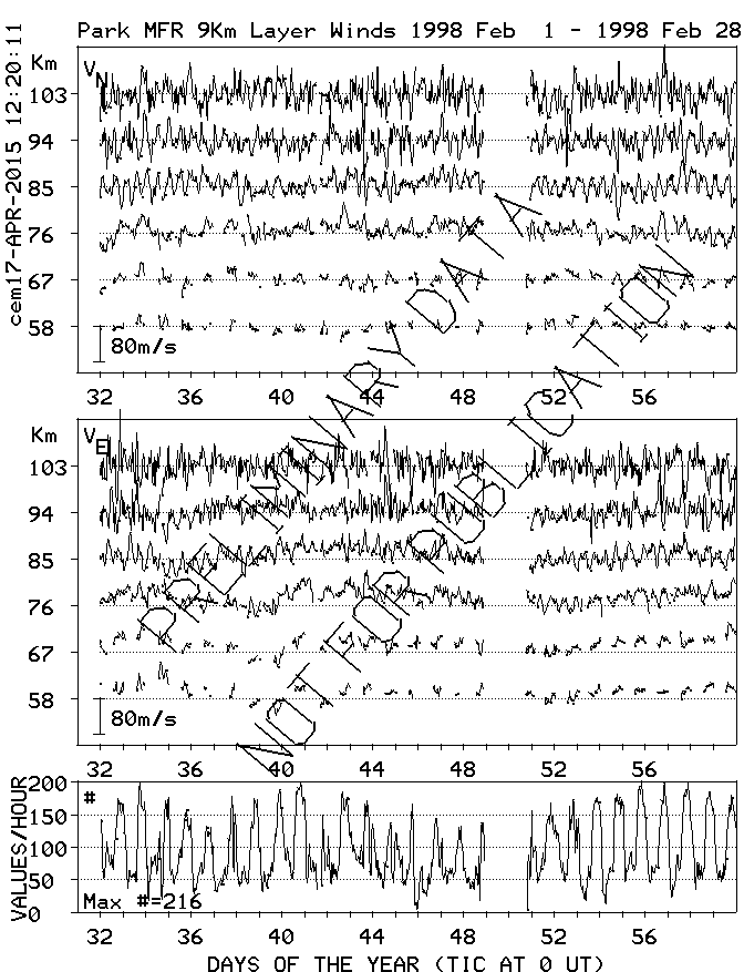 Saskatoon (52N,107W) MF Radar Winds, monthly quick look plots