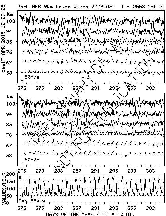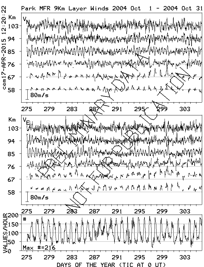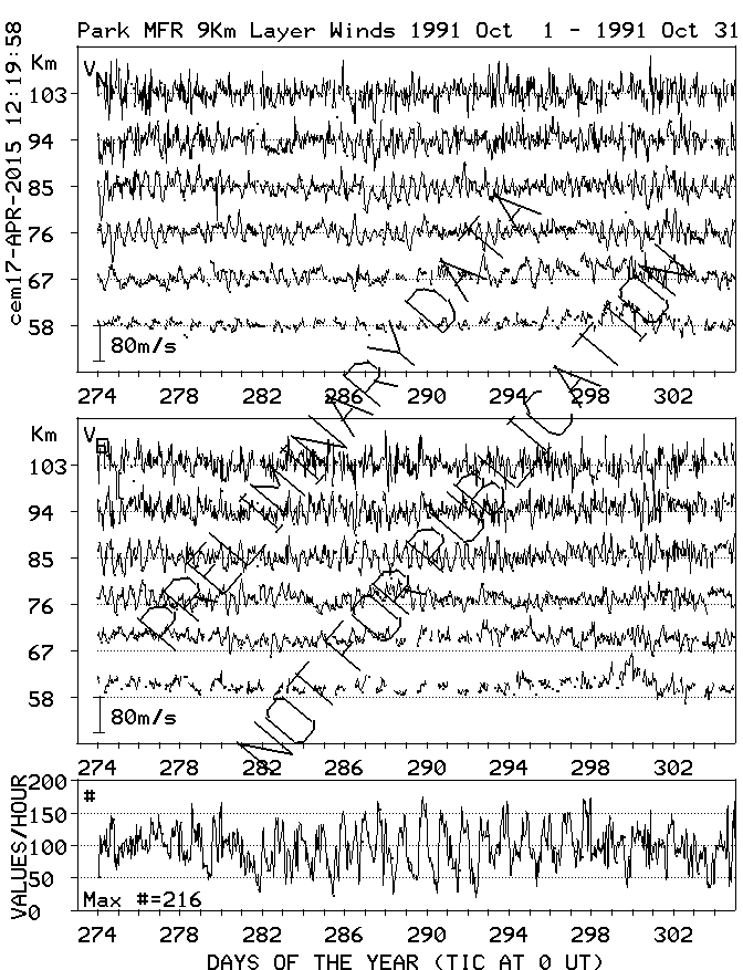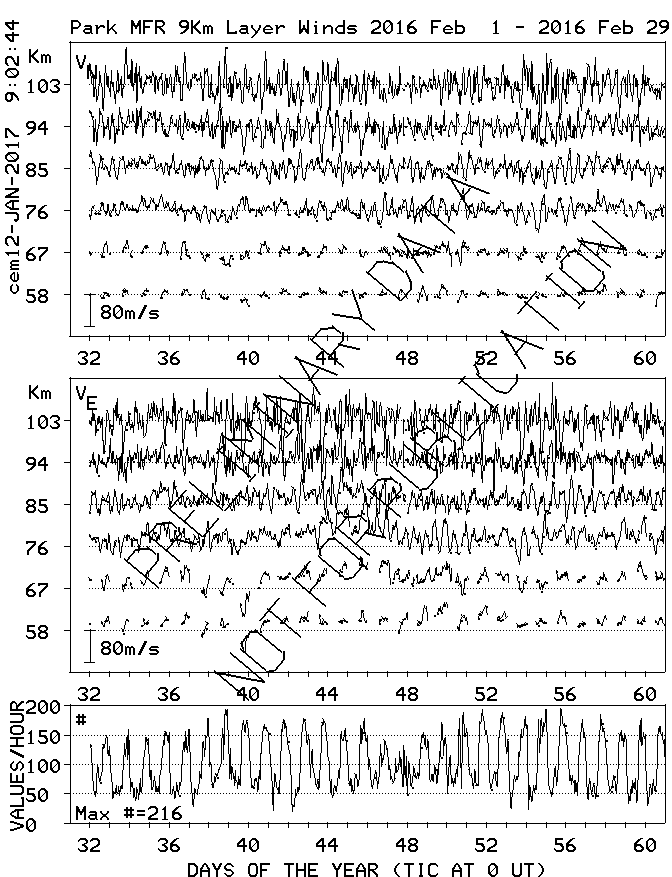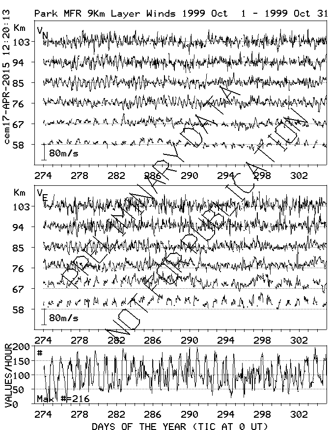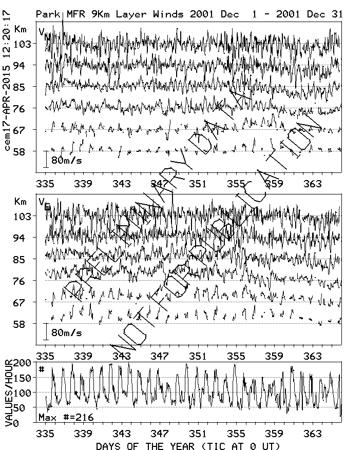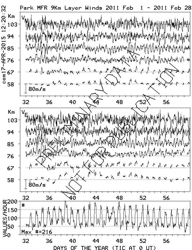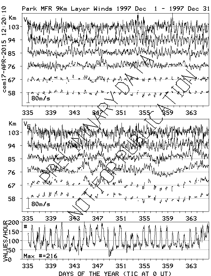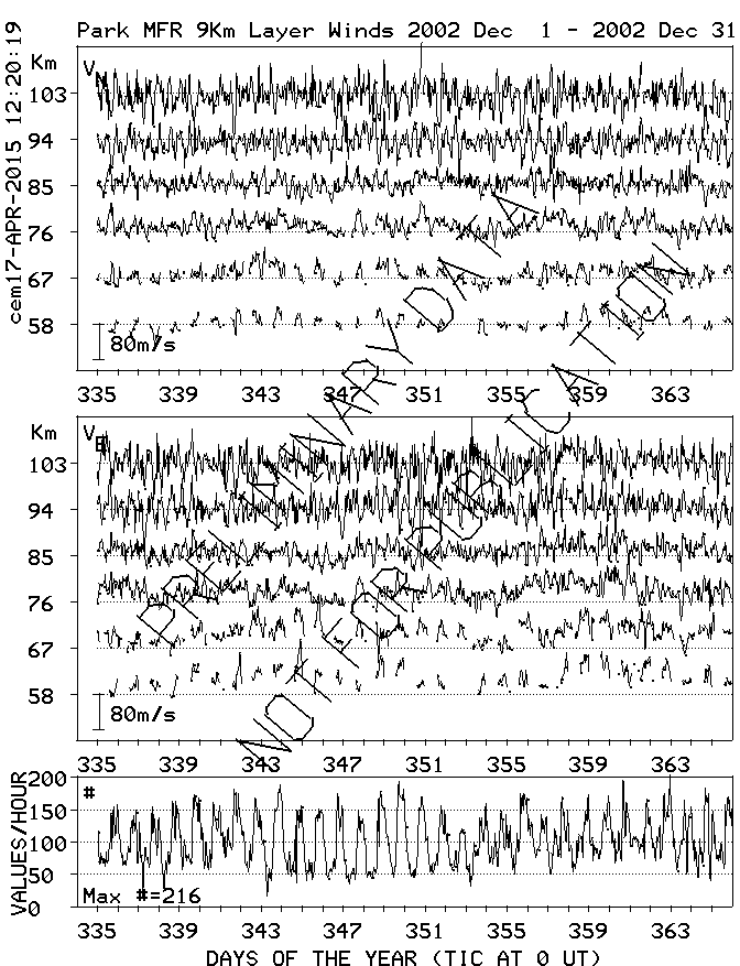 Saskatoon (52N,107W) MF Radar Winds, monthly quick look plots