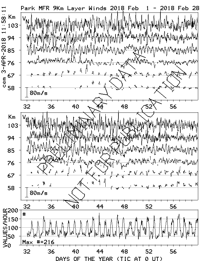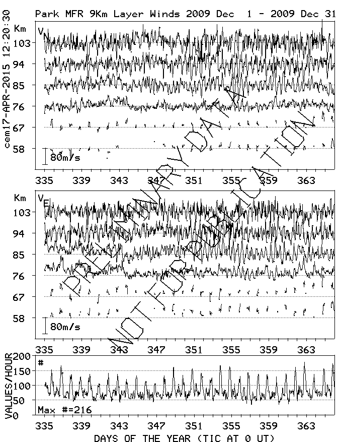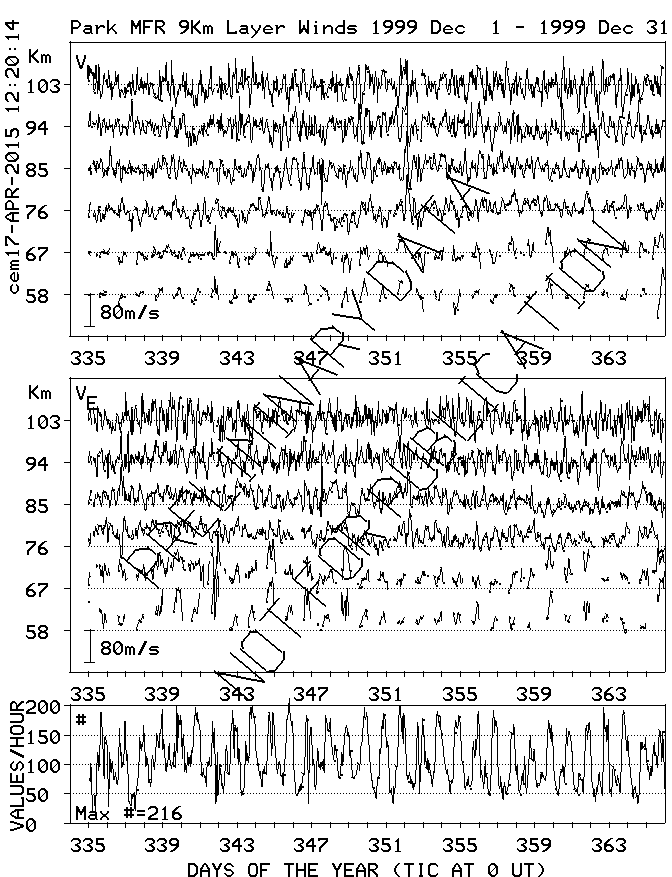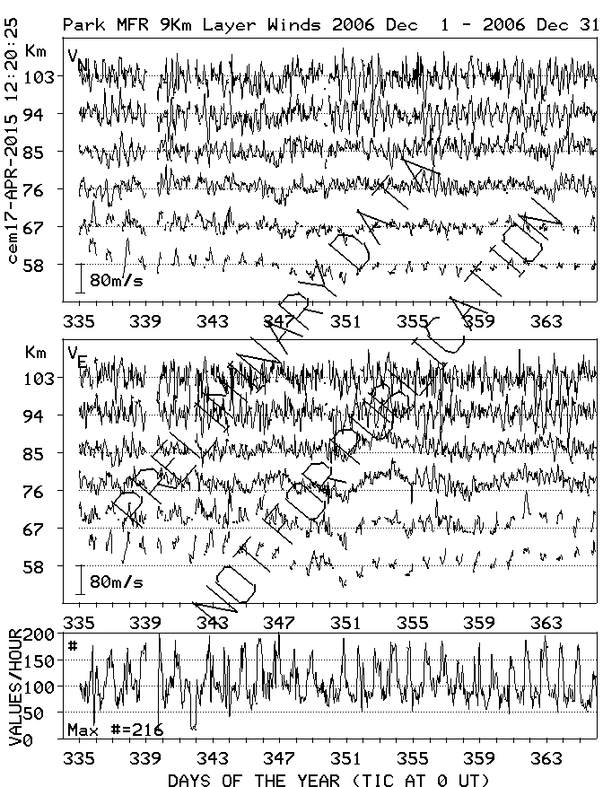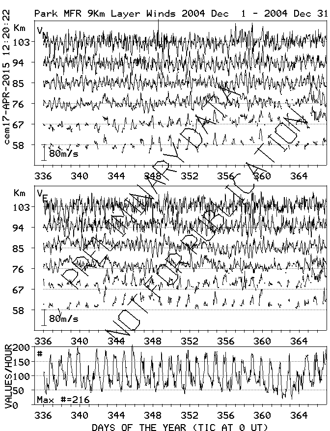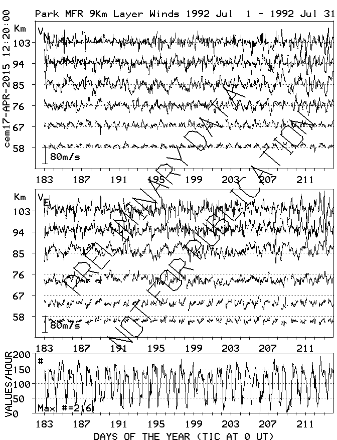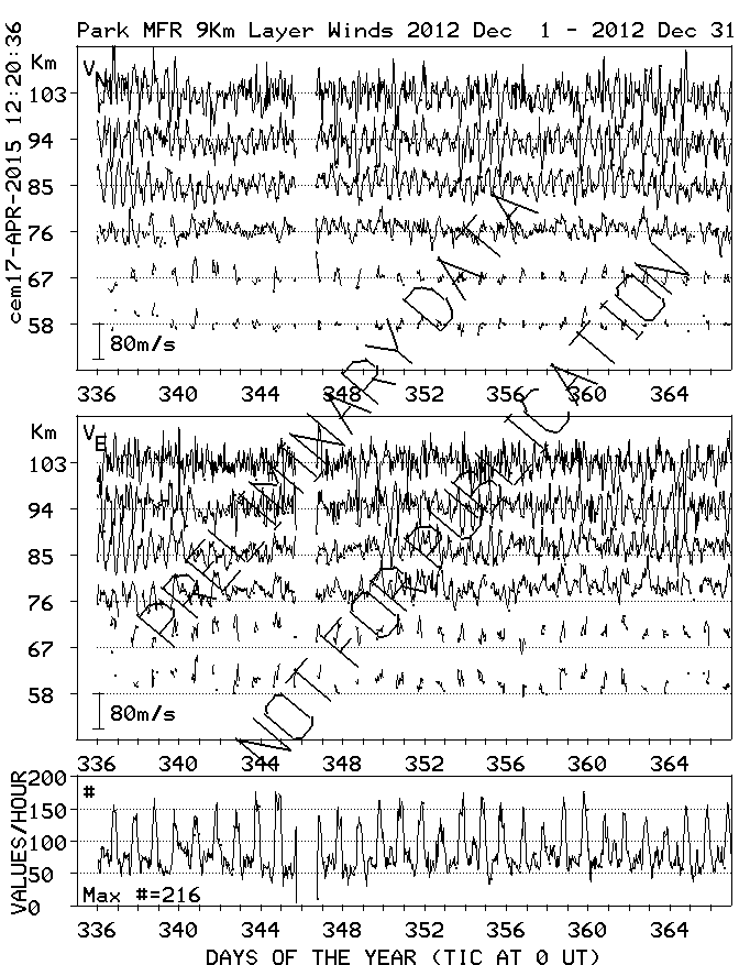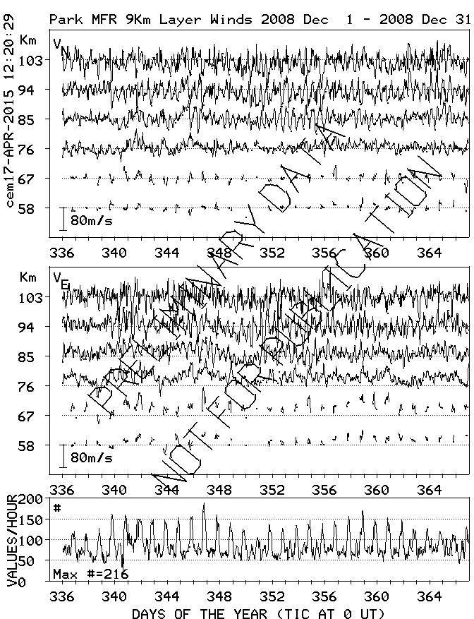 Saskatoon (52N,107W) MF Radar Winds, monthly quick look plots